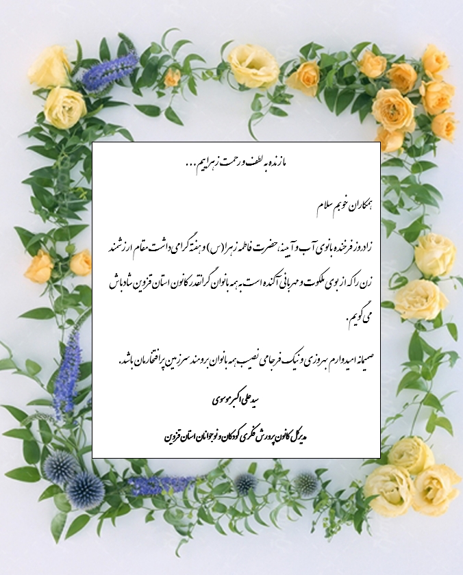 به مناسبت زادروز خجسته حضرت زهرا(س) و روز زن چند برنامه متنوع  به همت کانون استان قزوین اجرا شد.